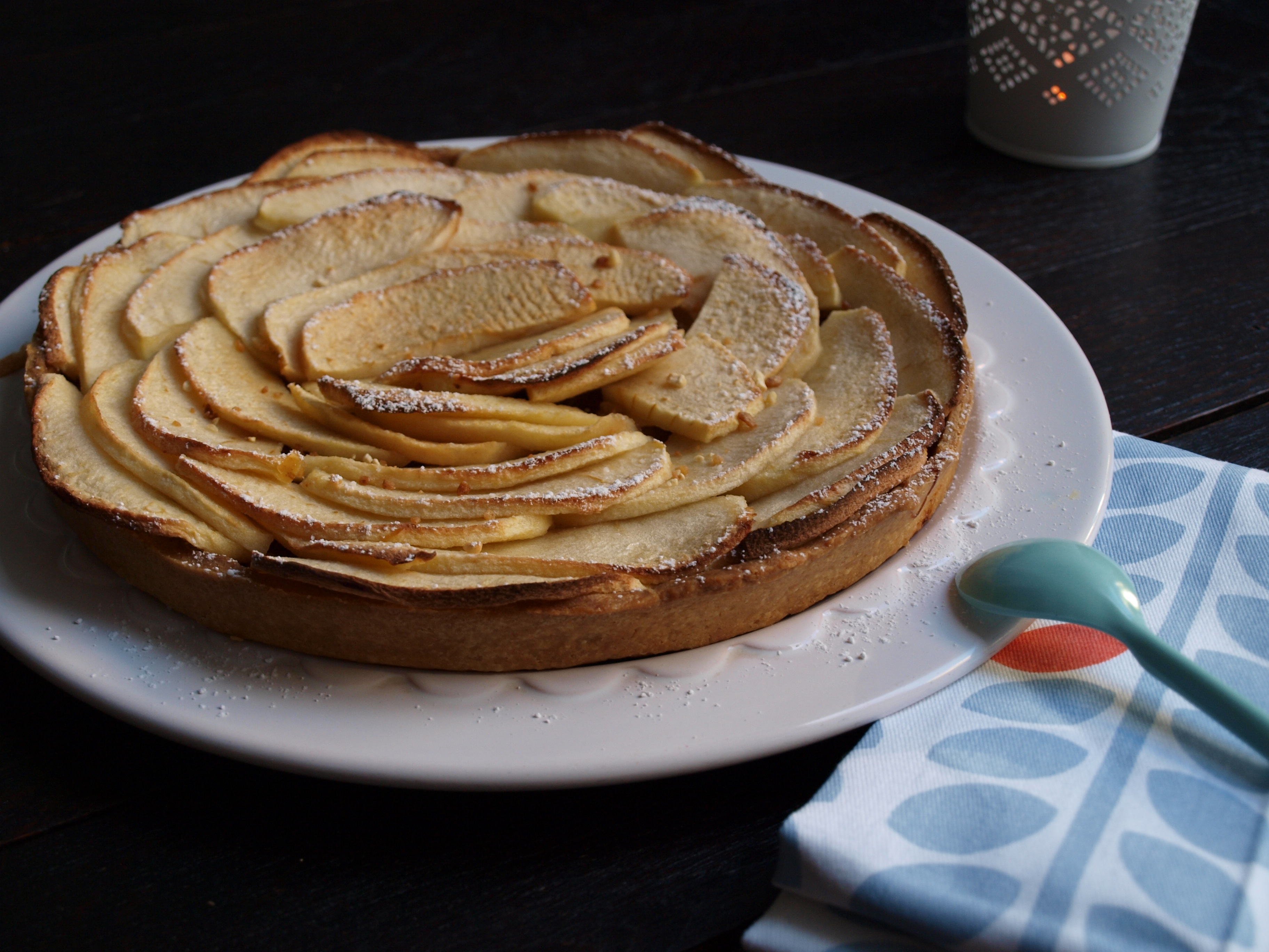 Couper les pommes en lamelles fines (mandoline japonaise ou accessoire de robot). Enrouler les pommes pour former un disque de 18cm.